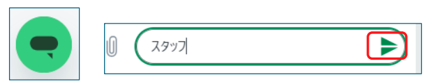 図のように「スタッフ」と⼊⼒し送信(紙⾶⾏機のマークを押下)すると⼊⼒⽅法について担当スタッフに直接質問することが可能です。